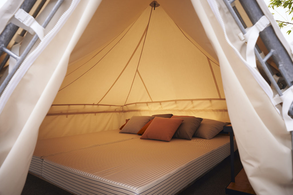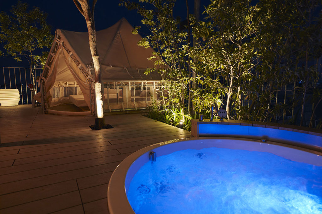 地上10階建・全41室の最上階にはグランピングエリアを備え、東京・池袋という都会の真ん中でのキャンプを体験することもできる、都市のとまり木のようなホテルです。