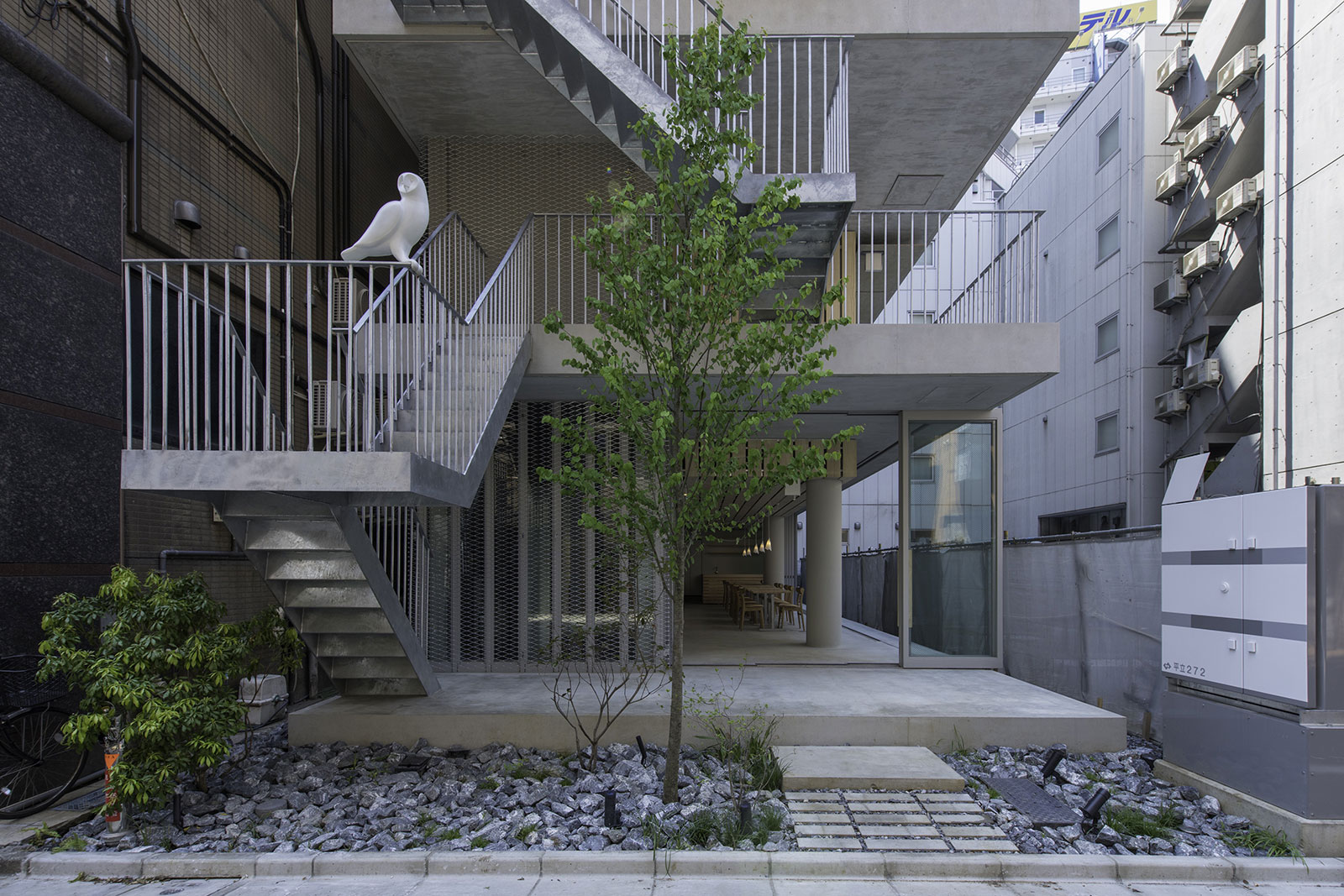 街に向かって設計された、のびやかな外階段。