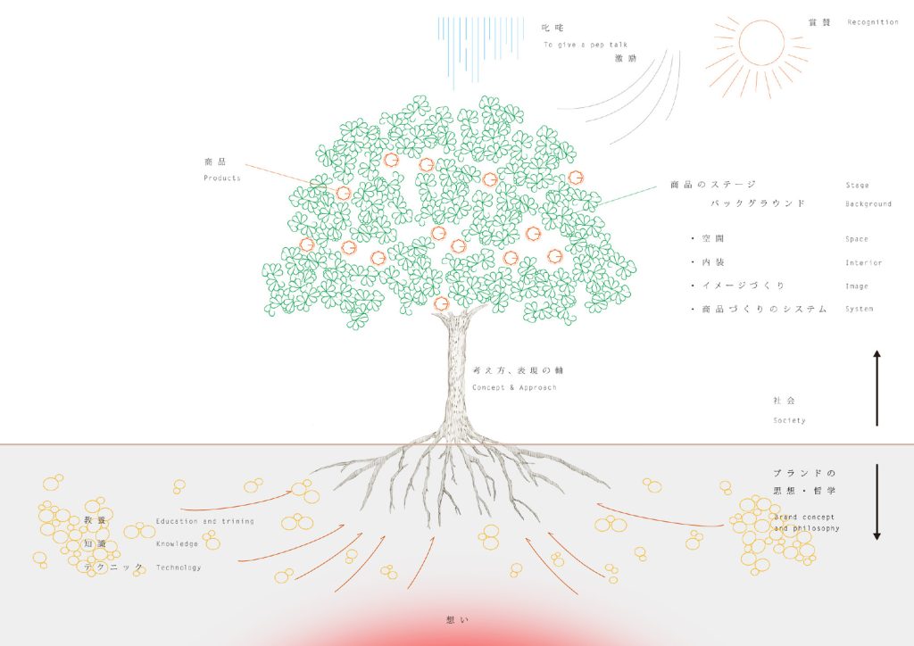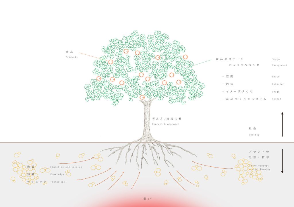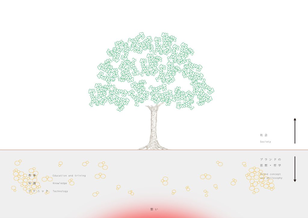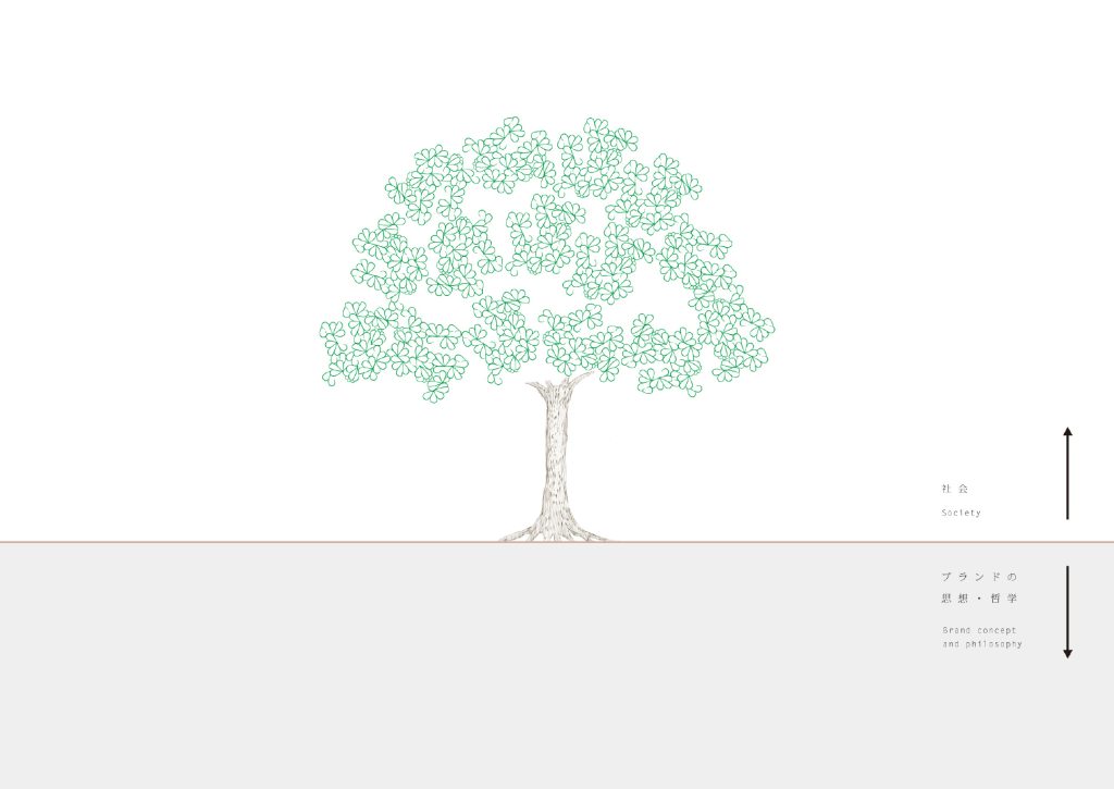 まず、地面から下をブランドの思想哲学とし、地面から上を社会とします。