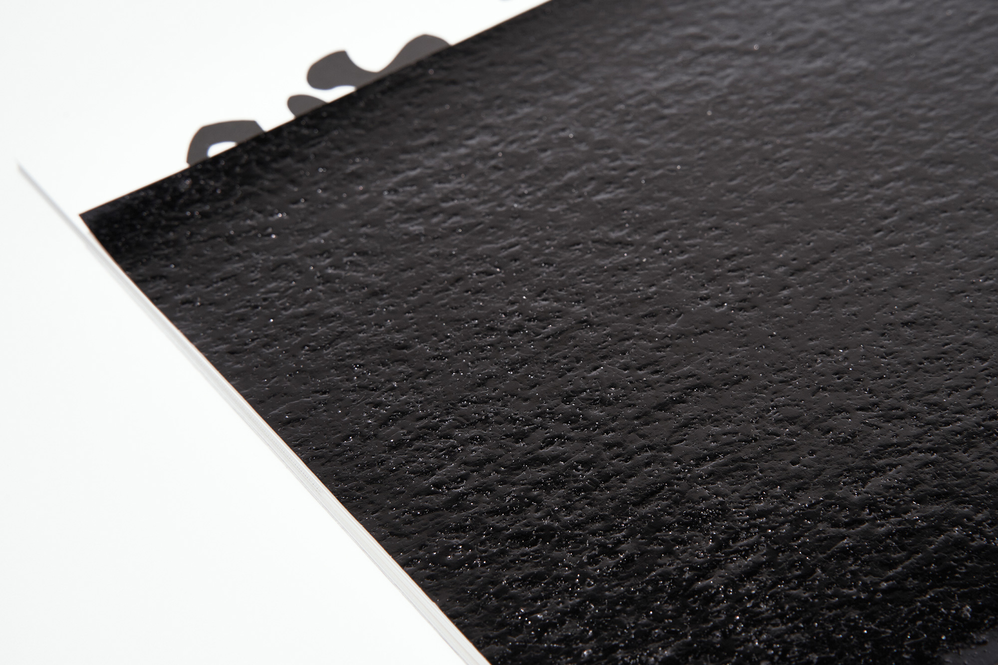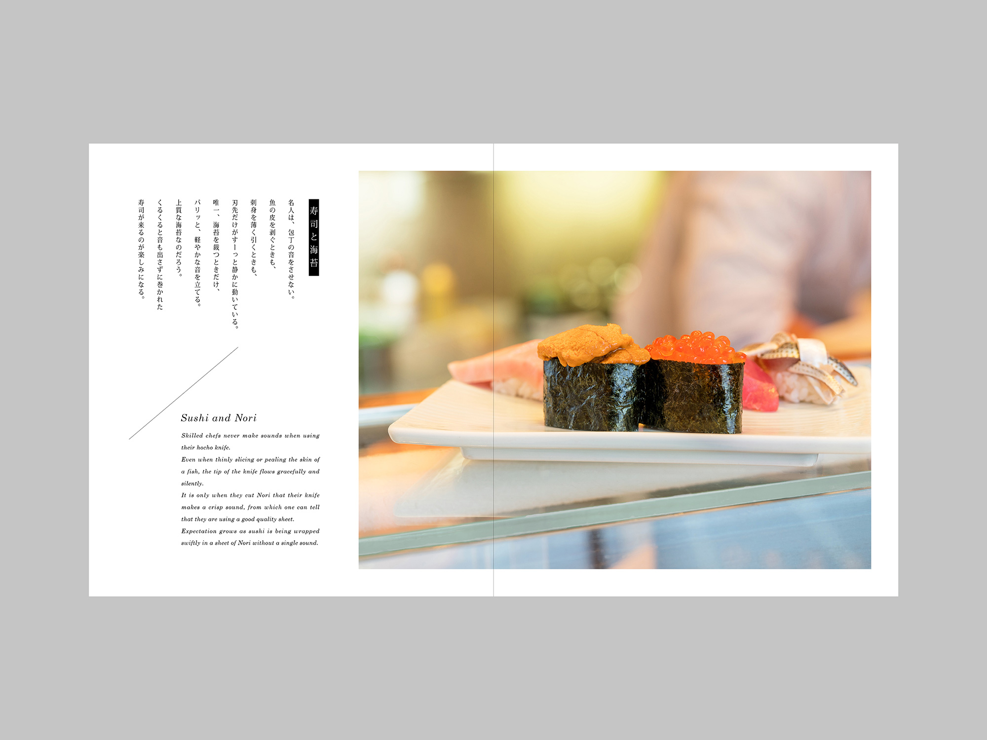 表紙は、黒ベタの箔押しに海苔のテクスチャをランダムに押すことで、海苔の質感を再現。