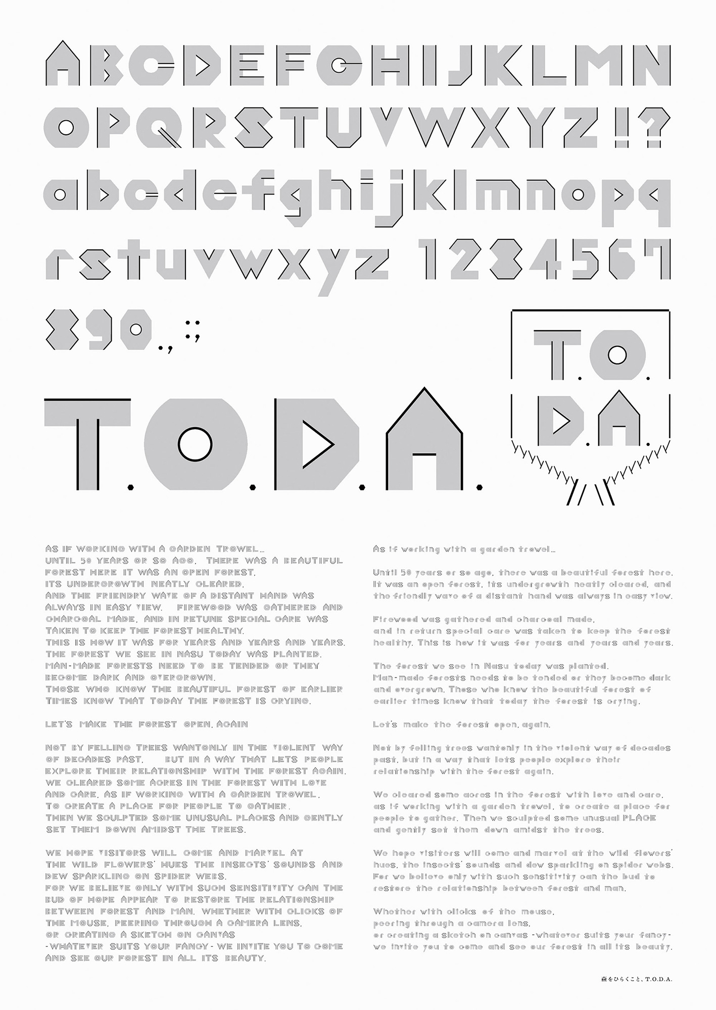 MORI WO HIRAKUKOTO, T.O.D.A. 森をひらくこと、T.O.D.A.
